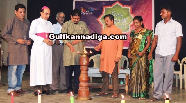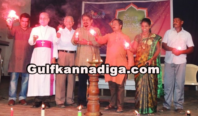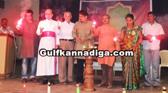 While speaking, Peer Basha, famous, eminent Kannada young poet said in his address that lights are the symbol of brightness. By joining together the minds of human beings with festivals, the work should be, building the nation. By giving new meaning to festivals and formalities, we have to respond positively to the wishes of the people. Though the shapes of the lights are fragmented, the form of brightness is same. Therefore by thinking brightness is the brightness of soul and mind, we have to lead the life ahead, he added.
