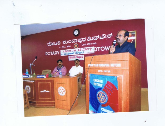Kundapur; Nov 04: Addressing the “Mental health awareness”programme organized by rotary club’s family get-together programme at rotary club Kundapur mid- town auditorium, lion Dr.Prakash Tolar, Chief medical officer of Kundapur Matha hospital and eminent psychologist said in his guest of honor speech that there are many types of psychological disorders. Timely treatment can be provided to some of the mental patients through private counseling.