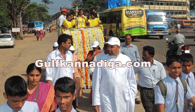 Zilla panchayat member Prakash Mendon start opened the programme by flying the balloons in the sky and blessed for the success of the programme.City procession was inaugurated by Rev.Fr.Anil D’Souza, convener St Mary’s education institution. Rajesh Kaveri, corporation member lighted the ‘Kreeda Jyothi’.