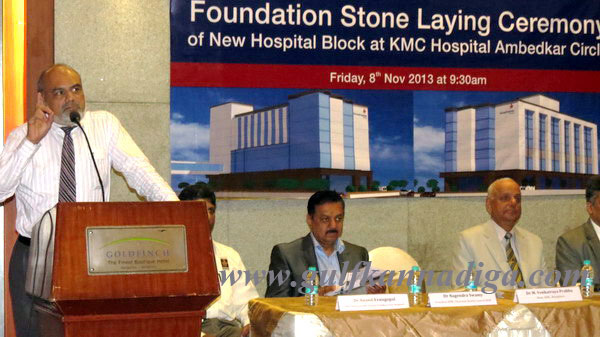 Mangalore, Nov. 8: The foundation stoning ceremony of new hospital block of KMC hospital was held at KMC Hospital near Ambedkar circle on Friday Nov.8.