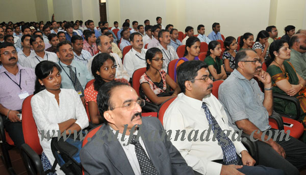 Sudhir Kumar Jain, syndicate bank chairman and managing director, Dr. N.K Tingalaya, former chairman of Syndicate Bank, Dr Shantharam Shetty, pro-chancellor of Nitte University, Dr Ramananda Shetty, vice chancellor, Vishal Hegde, trustee of Nitte Education Trust, Dr M.S Moodittaya, Dr Rajashekhar, staff development director and others were present.