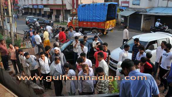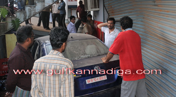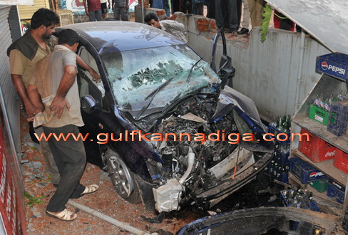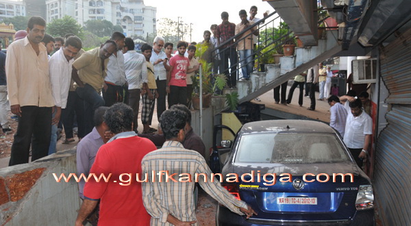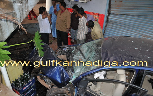 Mangalore, Nov 16: A Volkswagen Vento car travelling from Attavar railway station to Attavar Katte crashed into Hotel South India located near Beary Academy office at Attavar Katte.