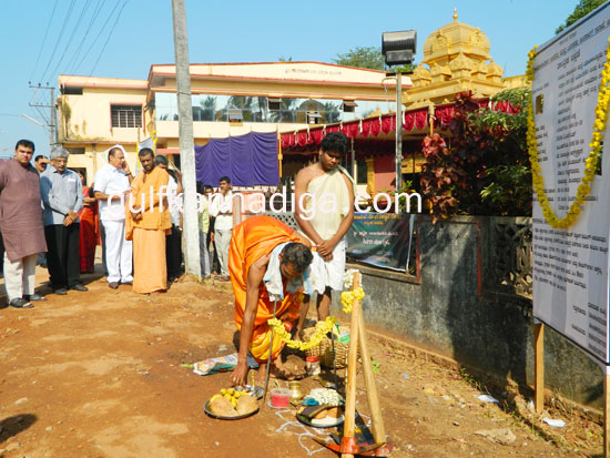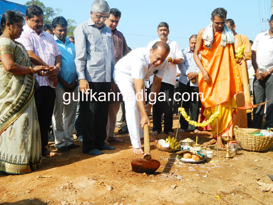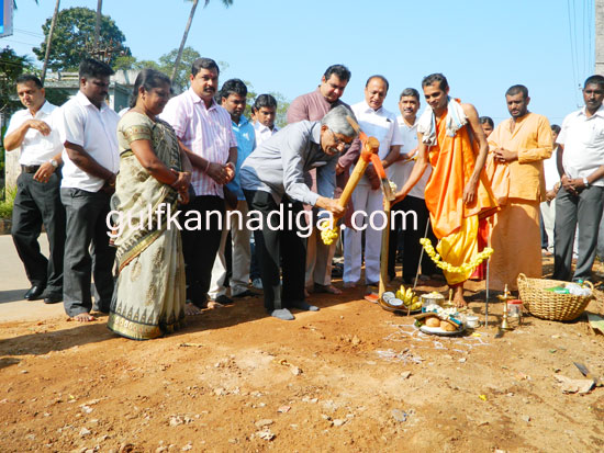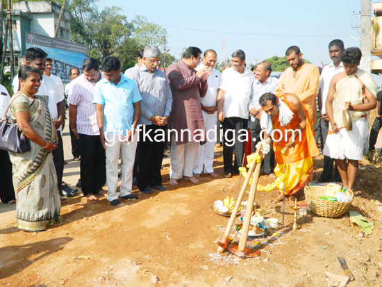 Udupi; Nov 16: Foundation stone laying ceremony was held near Bannanje Narayanaguru Sabhabhavana on Nov 16, Saturday for the Bannanje-Kadiyaly public usage state highway road concretization, construction of drainage and footpath works