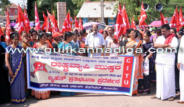In their protest the beedi workers demanded provident fund for beedi workers, scholarship to the children of beedi workers till 8th standard, steps to bring all beedi workers under BPL category, stop contract and sub-contract system, provide 6 days of guaranteed job for beedi workers in a week, provide log book and ID card for beedi workers, provide 35 kg rice at Rs 2 per kg for all the beedi workers families and other such aspect to help uplift the Laborers community.