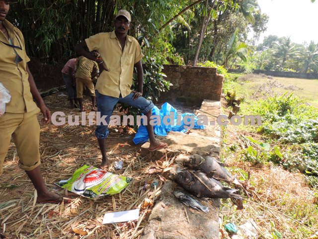 Under the leadership of Prabhakar Shetty, temple’s organizing committee president, Koteshwara village panchayat president Rajashekara Shetty, development officer Tejappa Kulal, grama panchayat co-ordinator Satyanarayana, dead fishes have been buried.