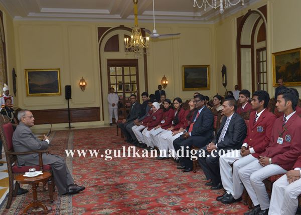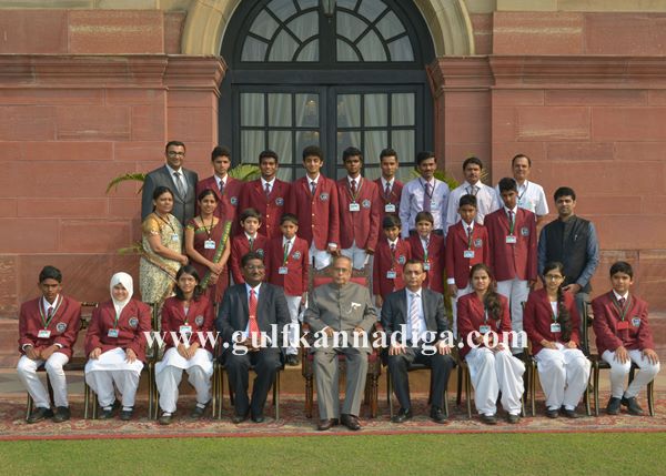 Seventeen Students and five staff lead by the Managing Trustee Shree Syed Abdu Khader and Principal John Mathew. The team was received to the special conference Room at Rashtrapathy Bhavan by Personal staff of the President. H.E. Hon. President arrived at 12 noon and was received with a Bouquet of Red Roses by the Managing Trustee Syed Abdul Khader. H.E. Hon. President was briefed by Principal Mr. John Mathew on the work done by the Management to enhance good education at a remote place like Shiroor and highlighted the quality of educational opportunities available for students.