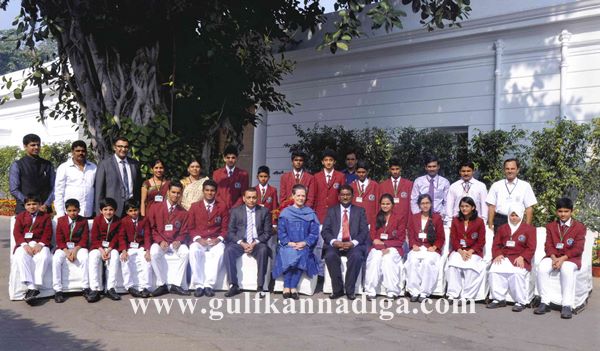 Hon. Madame Sonia Ghandhi , President of Indian National Congress and Chairperson of UPA, Meets Green Valley National School and PU College Students