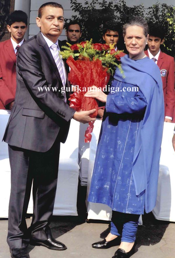 The students and staff were received by the personal staff of 10 Janpath and were ushered into the sprawling lawns of the residence where Sonia Ghandhi met the students and the staff. Madame was received with a bouquet of Red Roses by Managing Trustee Syed Abdul Khader and the Principal.