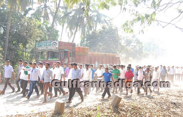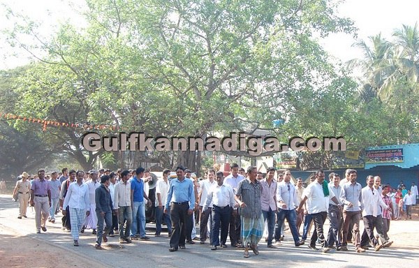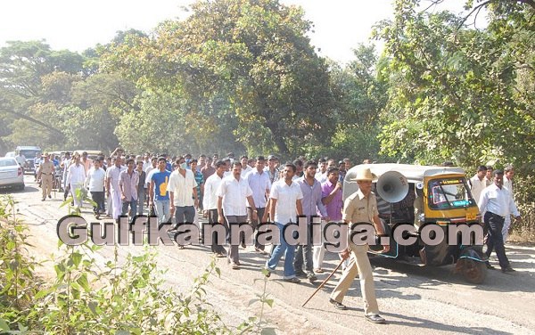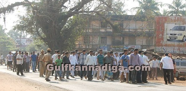 The repair work by the NH department, on NH from Shiroor Sunkadagundi was not only complete rubbish but also gravel pieces and mud were scattered all over on highway making travel even more difficult. As the repair work which started after several months of delay, condemning the inferior quality of workmanship, people joined hands and protested on Nov 22,Friday and organized a procession from Kelapete to market place.