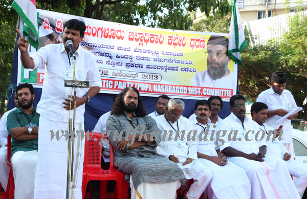 Mangalore, Dec.2: Demanding to release Abdul Naseer Madani, chairman of Peoples Democratic Party (PDP) who has been lodged in Parappana Agrahara from three and half years, the member of PDP staged a protest in front of Deputy Commissioner’s office on Monday, December 2.