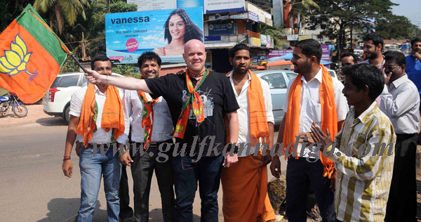As BJP won in 3 states i.e. Madhya Pradesh, Rajasthan and Chattisgarh in the assembly elections, the workers were seen celebrating in Mangalore, Pumpwell and Surathkal region and other places. Sandeep Sheety, Raghavendra Rao, Advocate, Avinash, Shrikar Prabhu , N Yogish Bhat , Jadish and more than 500 bjp Yuva morcha activist gather the celebration.