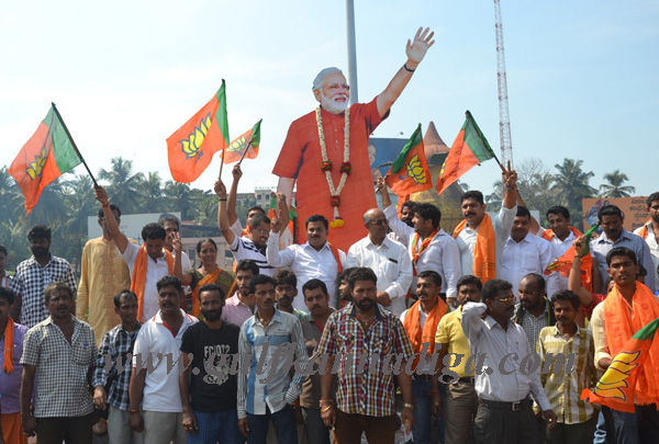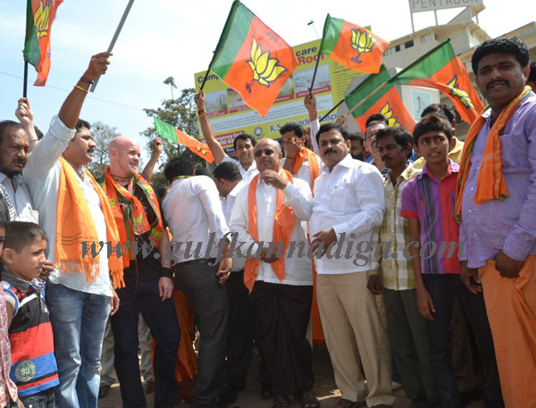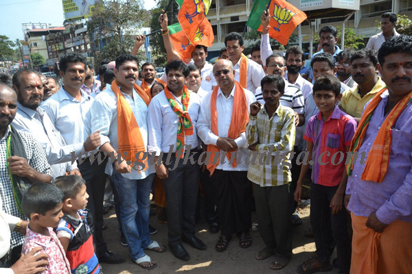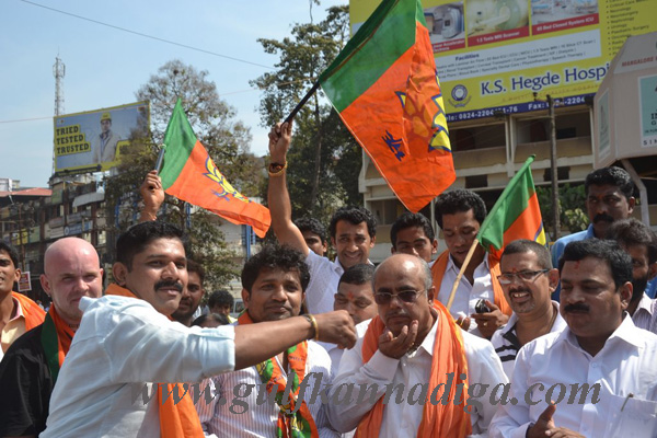 Mangalore, Dec. 8: The members of Bharathiya Janata Party (BJP) celebrated ‘Vijayotsava’ in different places of Mangalore on Sunday, December 8.