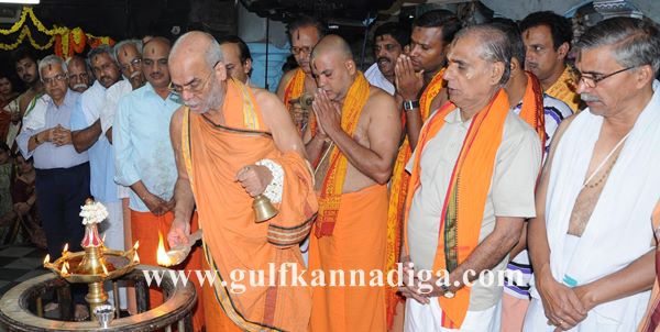Kalyanpur; Dec 08: ‘Bhajan Sapthaha’, which used to be held in Kalyanpur Shree Venkataramana temple every year, was inaugurated on Dec 07, Saturday by Shree Samsthana’s Gokarna Parthegali Jeevothama Matadheesh Shreemadh Vidhyadhiraja Theertha Shree Padhavadera Swamiji by lighting the traditional lamp.