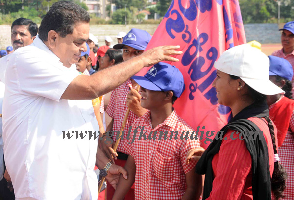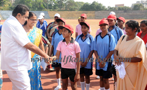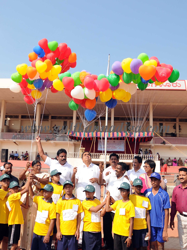 District Minister In-charge B Ramanath Rai inaugurated the sports meet by releasing the balloons in the air and holding sports torch handed over by the athletes.