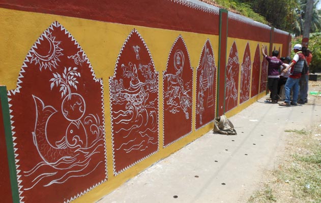 Harish Acharya,who has been serving as a art teacher for the past twenty years said , quality paints like white, yellow and terracotta etc are being used in order to prevent erosion and getting it destroyed. And also we have decided to write some good proclamatory words (Ghosha vaakya) on the drawings, he opined.