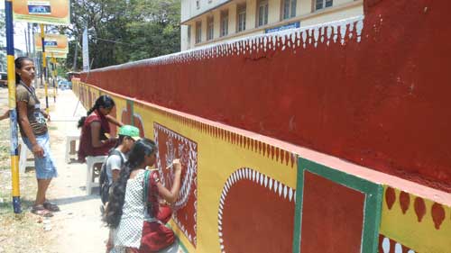 According to students, teachers themselves are inspiring us to engage in such constructive works and we have been drawing pictures of various categories depicting the importance of Tulu culture on the walls effective from April 1, 2013.These opportunities are in fact a good bench mark for us to exhibit our hidden talents says Apoorva Shenoy, one of the students.