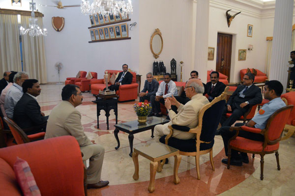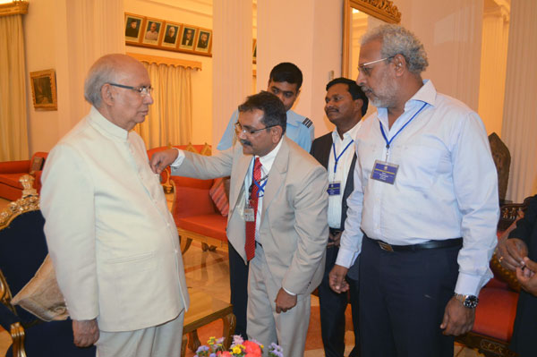 Being the Golden Jubilee year under the guidance of Central NMD( Central) Committee, Mumbai the local celebration committee consisting of allied office DGS Mumbai i.e.NMD Mangalore,NMPT,CMMI &IME of Karnataka Chapter and all stakeholders in the maritime fraternity had the opportunity of pinning the first navy merchant flag to His Excellency Dr.H.R.Bharadwaj,Governor of Karnataka at Raj Bhavan,Bangalore on 31 March 2013 by DGS representative Capt.Santhosh Kumar,S,Darekar,Surveyor-in-charge,NMD Mangalore.