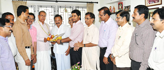 Moodbidri; Dec 12: An official invitation was extended to Dr.B.M.Viveka Rai, president of ‘Alvas’Vishwa Nudisiri Virasat-2013’by Nudisiri welcome committee. It was said that a group led by welcome committee president K.Amarnatha Shetty and Vivek Alva, of Alvas education foundation trust went to Rai’s Suyil residence in Mangalore and handed over an invitation.