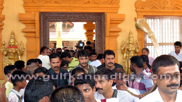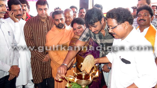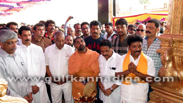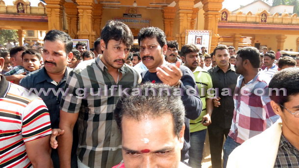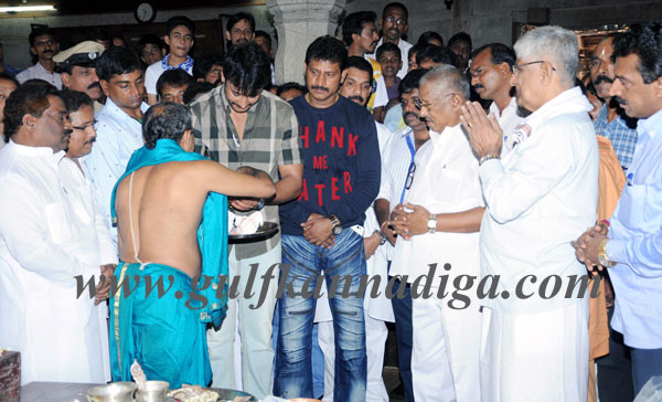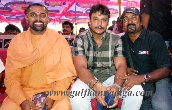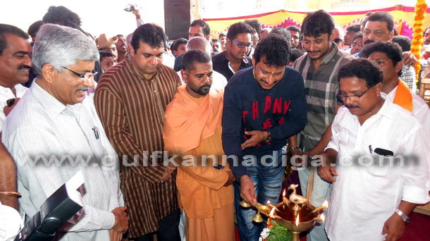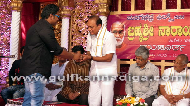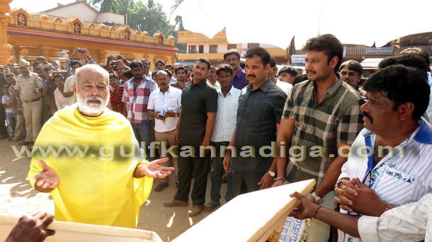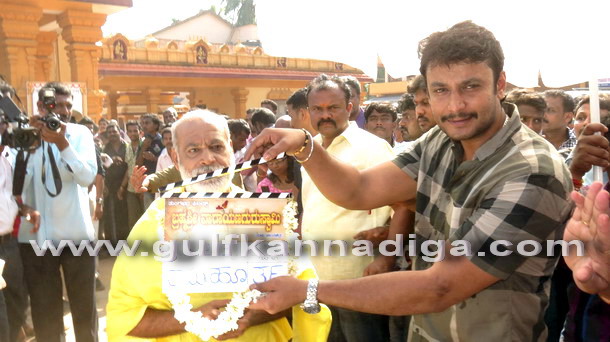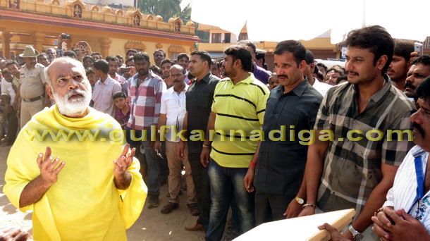 Mulki, Dec. 15: The muhurat ceremony of Brahmashri Narayanaguruswami Tulu Film of Tungabhadra Films held at Mulki Bappanadu Shri Durgaparameshwari Temple.Udupi MP Jayaprakash Hedge starts the camera. Challenging star Darshan clapped for the movie.