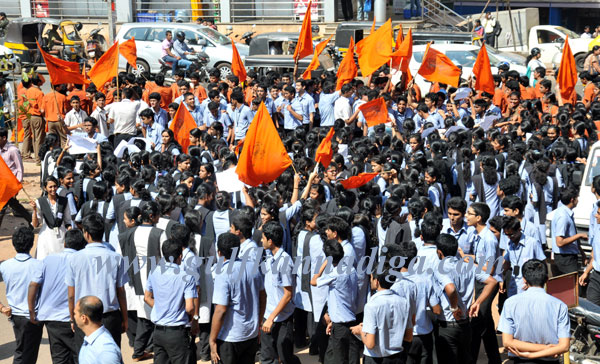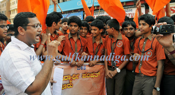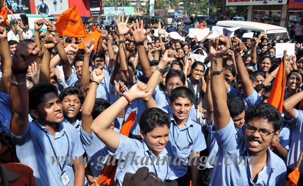 Mangalore, Dec 20: The members of ABVP staged a protest against the implementation of Karnataka Professional Education Institutions (Regulation of Admission and Determination of Fee) Act, 2006 at PVS Circle on Friday Dec 20.