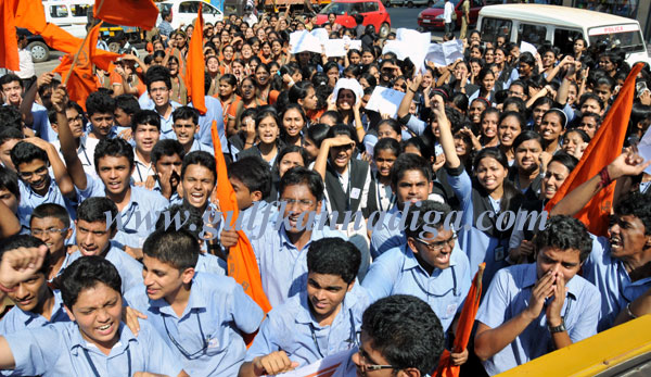 Addressing the protestors, N Ravikumar Kshatriya Sangatana secretary, ABVP said that the Common Entrance Fee will be doubled which will increase the burden on the poor and backward classes. The government is favouring private institutions by cancelling government quota in private institutions. The private institutions will lure money from students seeking admissions which is a bias in the education system.