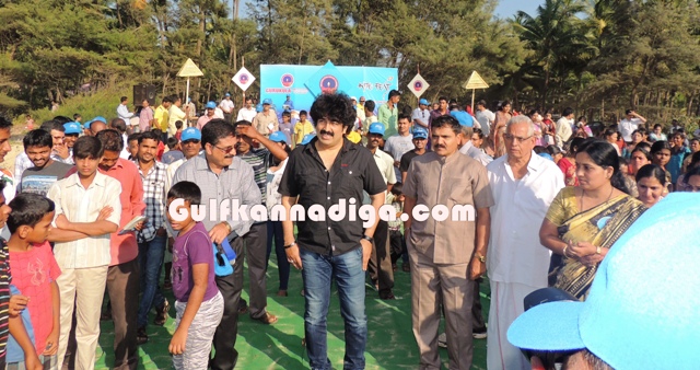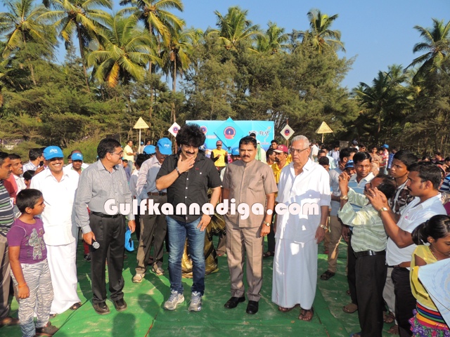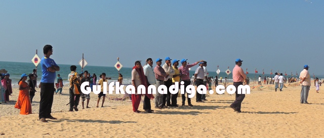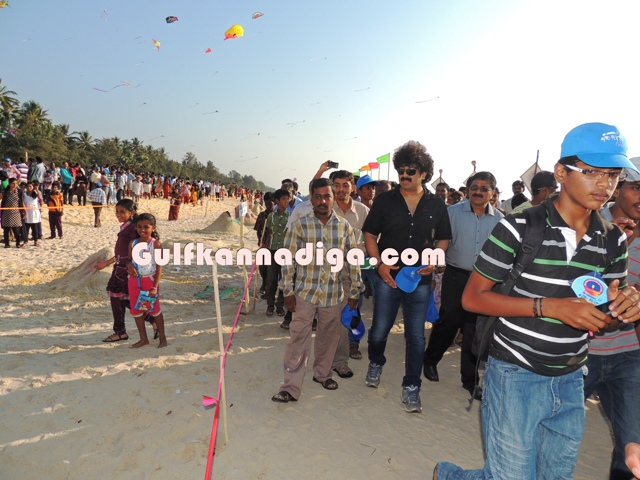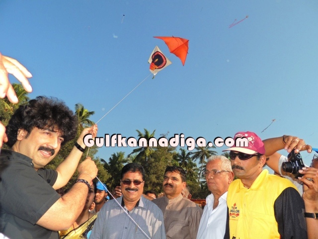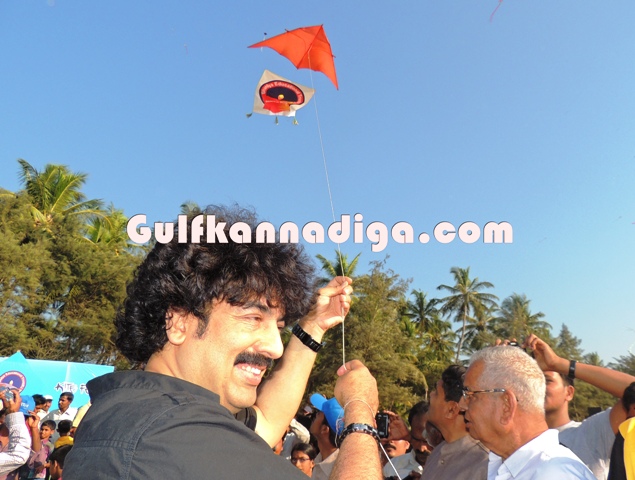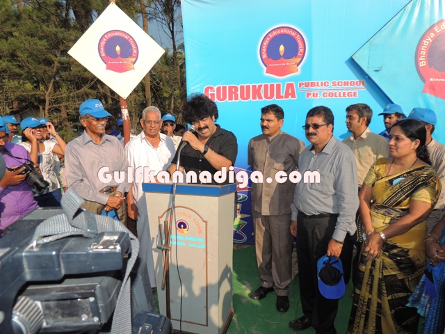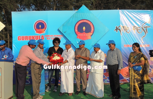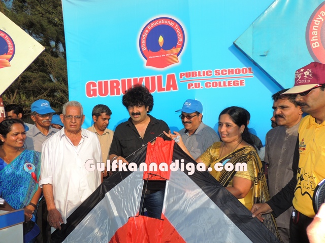 Kundapur; Dec 23: Renowned music director Gurukiran by flying the kite inaugurated the kite fest-2013, kite fly competition, display and sand sculptor competition organized jointly by Gurukula public school and P.U.College, Vakwady on Dec 22, Sunday in Koteshwara beach.