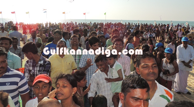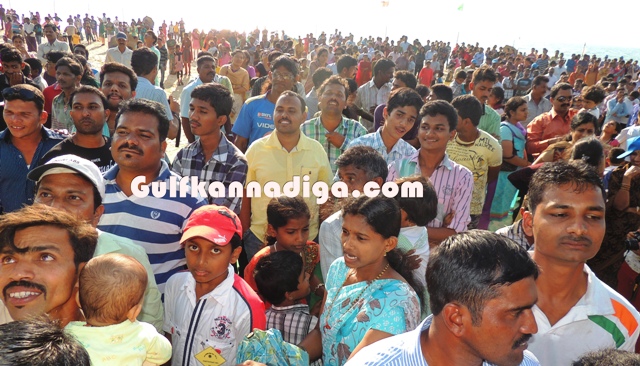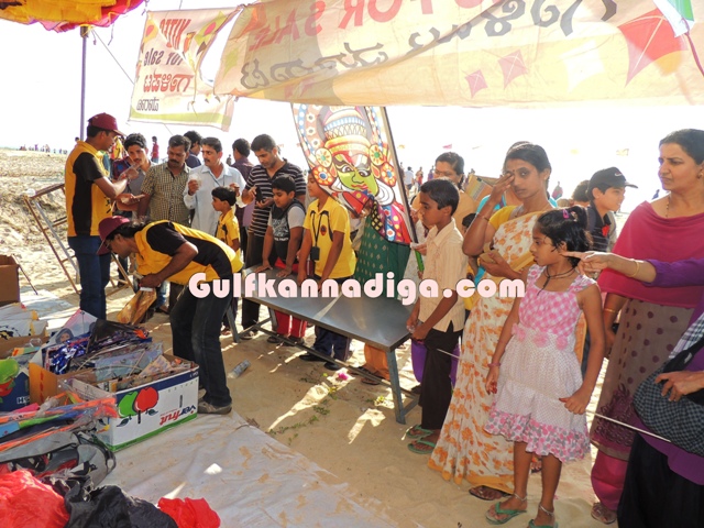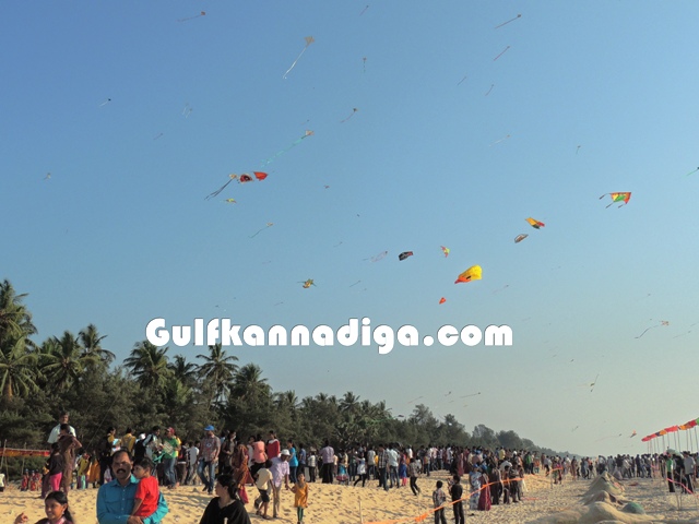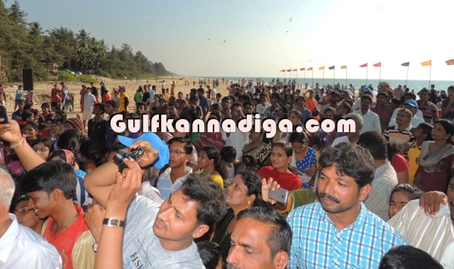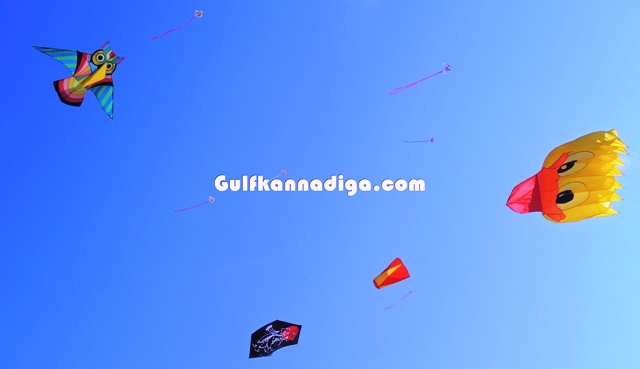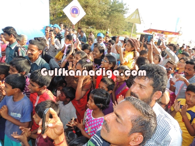 Kathakali, Yakshagana model, eagle, bat, butterfly, niche lighting (Goodudeepa), mickey-mouse, Ganapati and flying of colorful kites in the sky lured the minds of thousands of people gathered over there. Thousands of people arrived to witness the Kundapur’s rare and second kite-fest and thoroughly enjoyed.