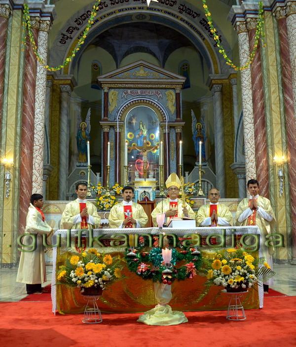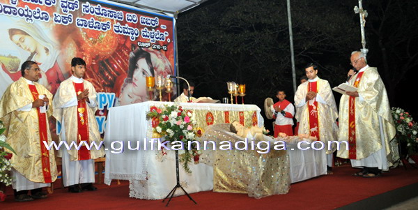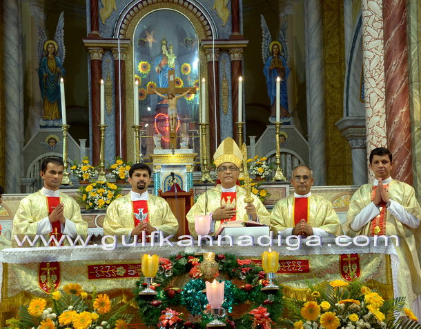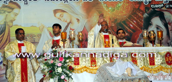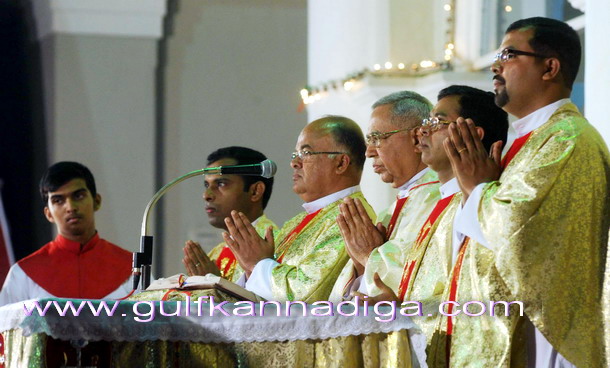 Bishop of Mangalore Diocese Dr. Aloysius Paul D’Souza concelebrated the Mass at 10:00 p.m. at Rosario Cathedral. In his address, he said that Jesus Christ was created by God and that he incarnated as a poor human being in order to be among the people and teach them the essence of love, harmony, and peace.