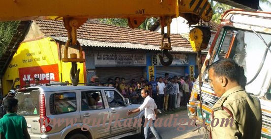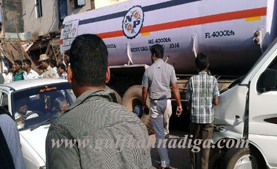 According to the eyewitnesses, an empty oil tanker bearing the Tamil Nadu registration was moving towards Mangalore and its brake failed at Gurpurpete. Sice the tanker was on high speed, the driver lost control over the vehicle and rammed into Maruti Eco and a Swift, injuring the passengers present in it.