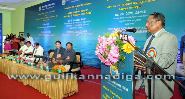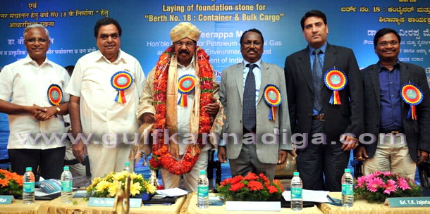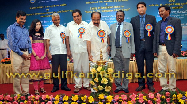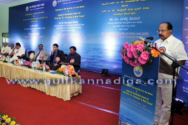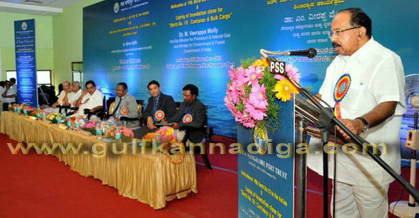 Mangalore, Dec 30: Union Minister for Petroleum and Natural Gas M Veerappa Moily inaugurated the Petroleum Oil and Lubricant berth Number 13 and laid the foundation for Berth No. 18 for container and bulk cargo at New Mangalore Port on Sunday, December 29.