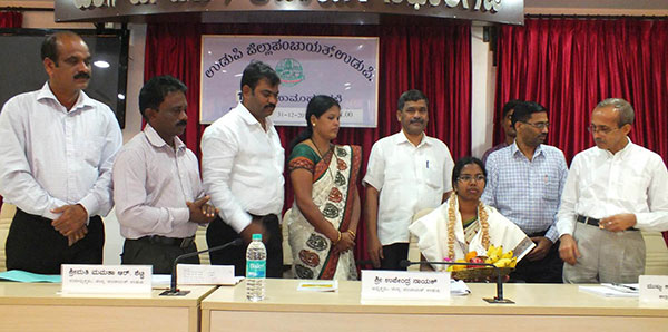 Udupi district Panchayat president Upendra Nayak, vice president Smt.Mamatha R Shetty,CEO S.A.Prabhakara Sharma and others after honoring Sabitha,extended their best wishes to her.