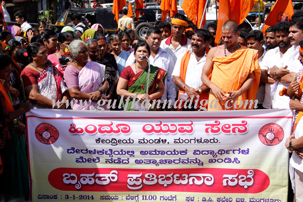 Addressing the protestors, Gurupura Vajradehi Mutt seer Sri Rajashekharananda Swamiji said that all the eight accused responsible such indecency crime must be booked under Goonda Act.