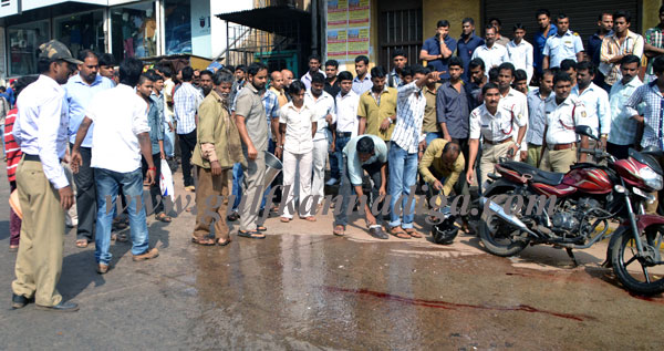 Mangalore, Jan 13, 2014: A bike rider was killed in a fatally accident, when his bike rammed into private service bus near Balmatta Circle on January 13,Monday.
