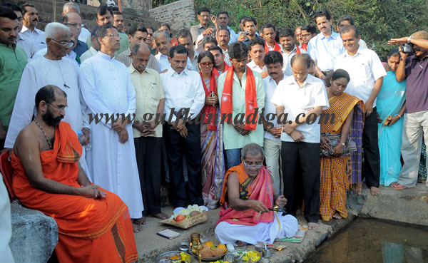 The protestors offered Poojas and rituals to river Nethravati in the presence of Sri Subrahmanya Samputa Narasimha Mutt seer Sri Vidyaprasanna Theertha and vow to oppose Yettinahole project till the government withdraw the proposal.