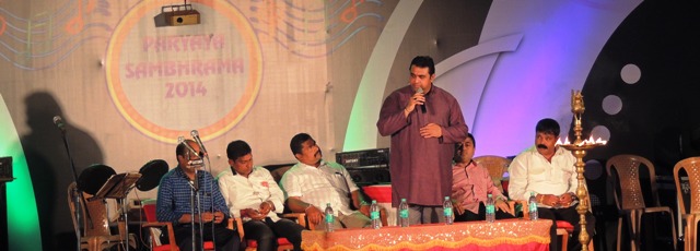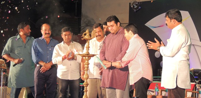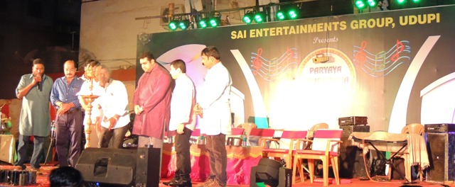 Udupi legislator Pramodh Madhwaraj after inaugurating the music rasamanjari programme in Udupi bus stand, felicitated E-TV Vahini Indian reality show’s eminent Mithun Shet and then inaugurated the orchestra programme nearby organized by Shree Entertainment Udupi