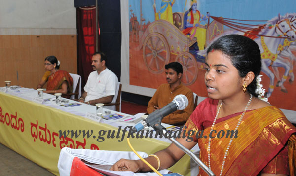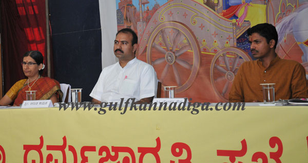 Mangalore, Jan 20: A awareness meet on Hindu religion programme held at SDM Law College on Sunday January 19. In this programme spokesperson of Hindu Janajagruti Samiti Mohan Gowda says that, “Today Hindu religion is facing several challenges and attacks from various quarters. Kashmir Pandits are thrown out from Kashmir, and in their own country they have been living as refugees. Our politicians are appeasing the minorities for the purpose of vote bank. Though the Hindus are being attacked in several ways, no one speaks of the injustice faced by Hindus.”