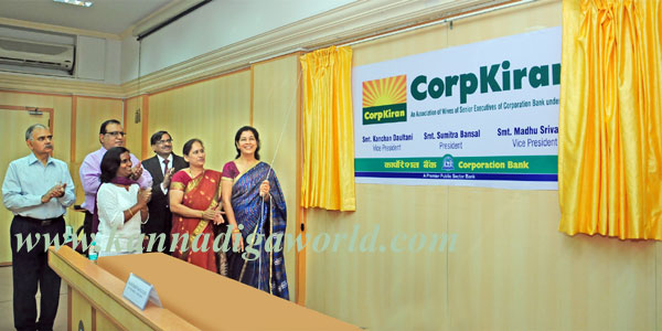 Corporation Bank has set up a wing named “Corp Kiran” – An association of Wives of Senior Executives of Corporation Bank under CSR (Corporate Social Responsibility) for undertaking CSR activities. On the occasion, the emblem of “Corp Kiran” was inaugurated by Smt. Sumitra Bansal, President, Corp Kiran in the presence of Smt. Kanchan Daultani, Vice President, Corp Kiran. Shri S R Bansal, Chairman & Managing Director of the Bank, Shri Amar Lal Daultani and Shri B K Srivastav, Executive Directors of the Bank were present on the occasion.