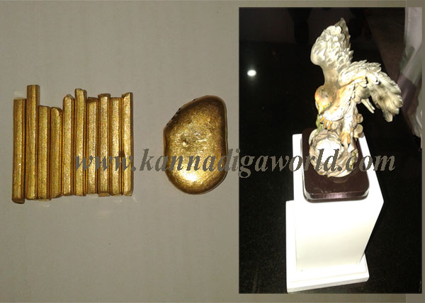 Mangalore,Jan.31: Custom Officers arrests a passenger at Mangalore International Airport on Wednesday January 29 and seized eleven metal pieces of gold worth Rs 5.86 lakh concealed in a show piece.