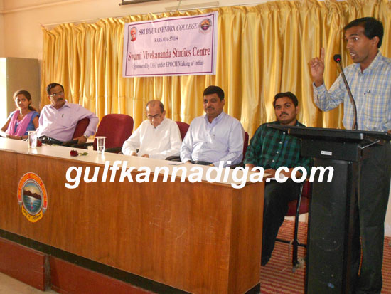 Karkala; Feb 01: Speaking as chief guest in the 150th birth anniversary celebration programme of Swami Vivekananda, held at Karkala Bhuvanendra College, Dr.K.Raghavendra Rao, lecturer, Ganapati High School, Padubidri said in his address that the man, how intellectual he may be, what high qualified, he may be, there is no meaning in acquired knowledge and wealth, if there is no humility and obedience. The intellectuals, without obedience are equal to that of traitors, he said.