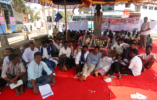 Kundapur; Feb 02: Opposing the move of district administration giving Ambedkar Bhavan to one Om Software private company for NPR Biometric programme since more than two months and by alleging that district administration is neglecting Dalits, 12 committee members of Karnataka Dalit Sangharsh Samiti (Beemavadha) Kundapur taluk samiti, have been observing indefinite fast unto death Satyagraha for the last two days in front of Shastri circle. However in the wake of written order, assurance from related authorities, Satyagraha was withdrawn.