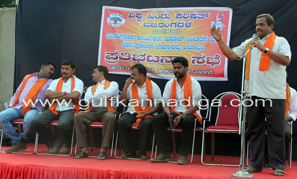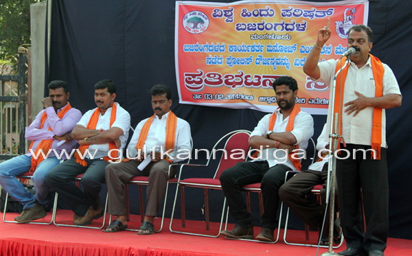 Addressing the protest, Bajrang Dal leader Sharan Pumpwell said that Barke police had taken Manoj into custody in connection with the assault on Muneer at KC Road on January 21. But the officials went against the law and system and electrocuted an innocent person who had been struggling to protect our religion and the culture. Hence the VHP and Bajrang Dal condemn this brutal and inhuman treatment of Manoj.