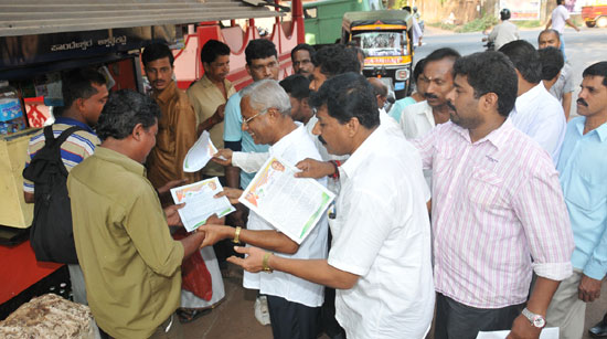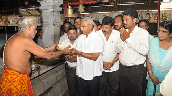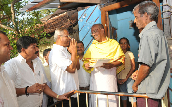 Mangalore, April 16: JR Lobo-Candidate from Mangalore South constituency in the forthcoming election has started his campaign by visiting Mahalingeshwara temple first at Pandeshwara and then after offering pooja there, he started his door to door campaign, along with other party workers and requested them to cast their vote to him.