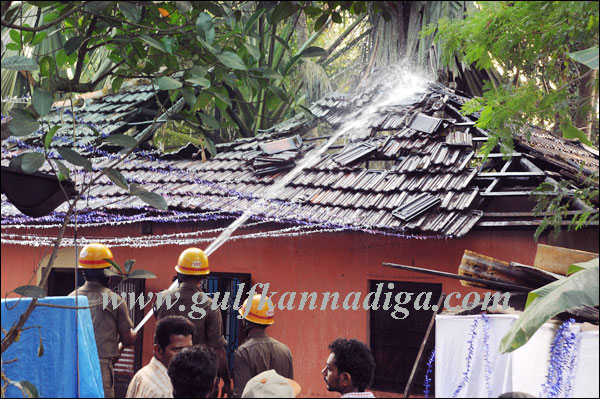 Mangalore, Feb 8: A fire mishap destroys a house located near Mangaladevi causing a loss of over Rs 2 lakhs on February 8, Saturday evening.