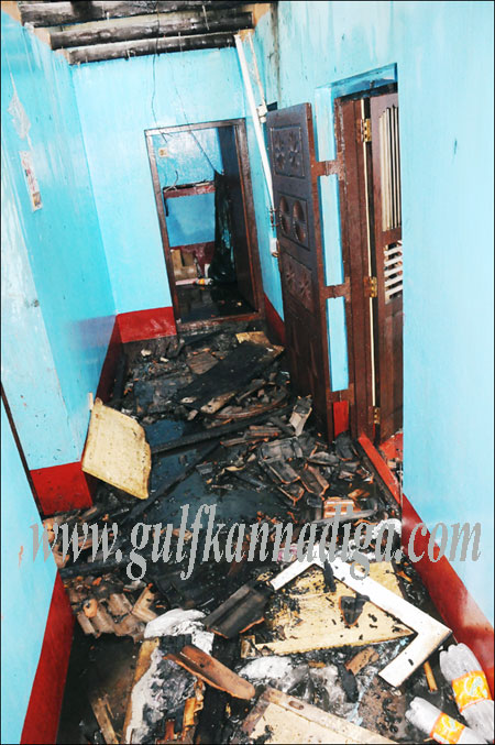 The houses belonged to Kasturi gutted in fire, finding no reason for the cause of mishap.