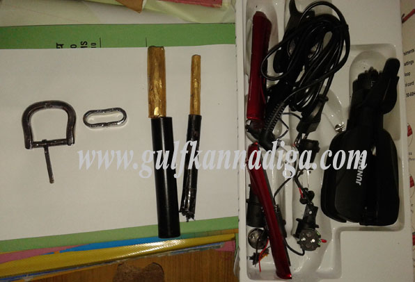 As the officials rubbed the buckle set, the coating of the buckle scraped off indicating the presence of gold, while, two yellow coloured metal rods wrapped in black plastic covered were found concealed in two cylindrical tube-like parts of the hair styling set.