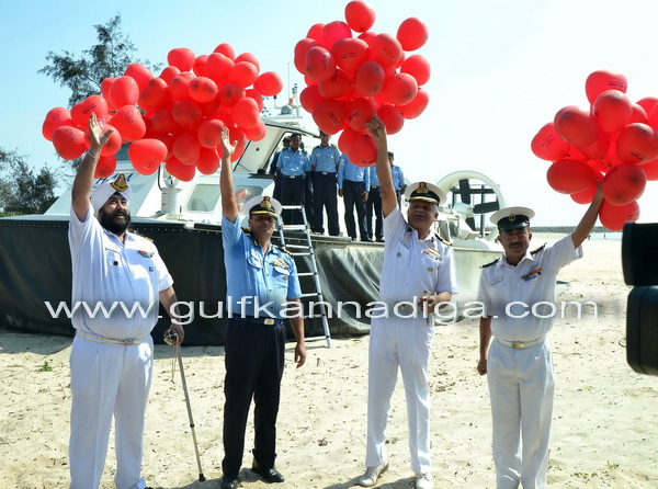 Karnataka coast guard commander Rajmani Sharma and commander Rajendar Singh welcomed the hovercraft in Panambur beach.