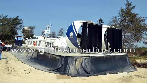 Mangalore, Feb 15: Indian Coast Guard ship H-194 Hovercraft arrived at Panambur beach on February 14, Friday.