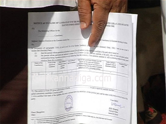 However, upset & angry senior politician and former Minister Vasanth V Salian, resigned from Congress and after meeting with JDS supremo Kumaraswamy decided to enter the election arena as official JDS Candidate.