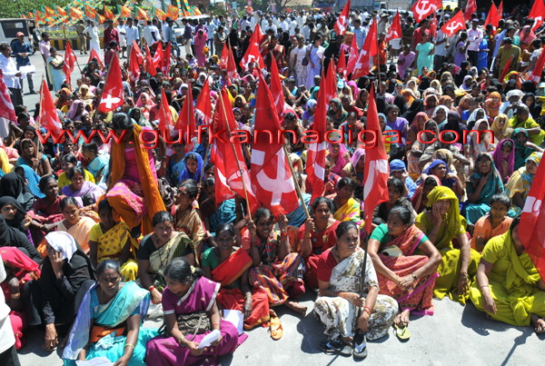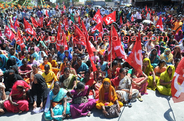 Addressing a protestors, CPI(M) state executive committee member K R Shriyan CPI(M) have staged many protest earlier, demanding free sites for the landless and to regularize the illegal pump set connections of farmers, but till date authorities have still not responded to the demands of the party .