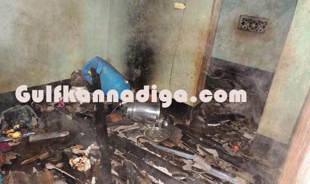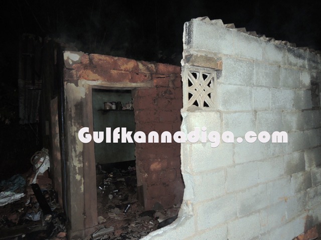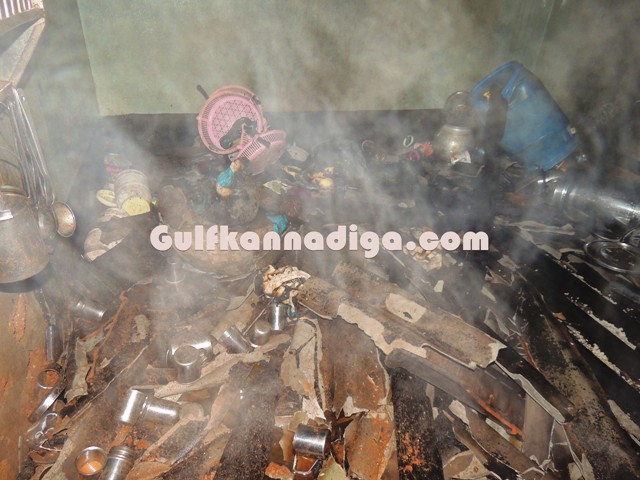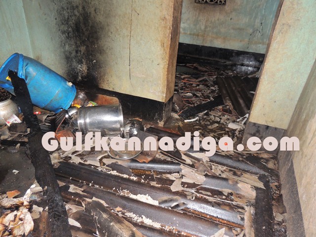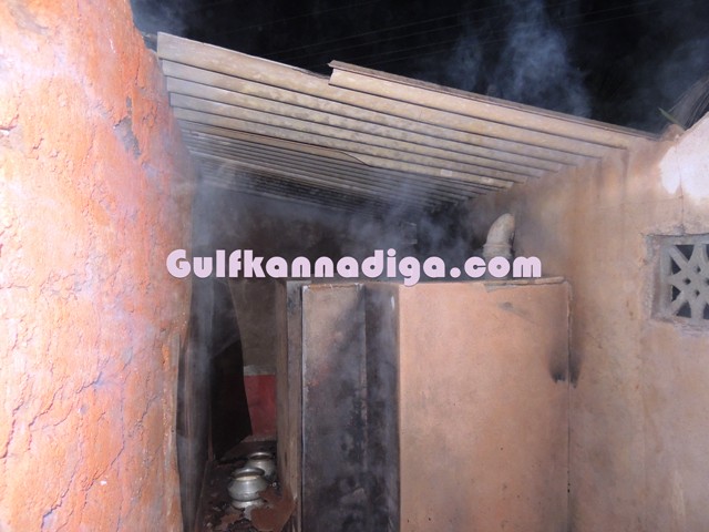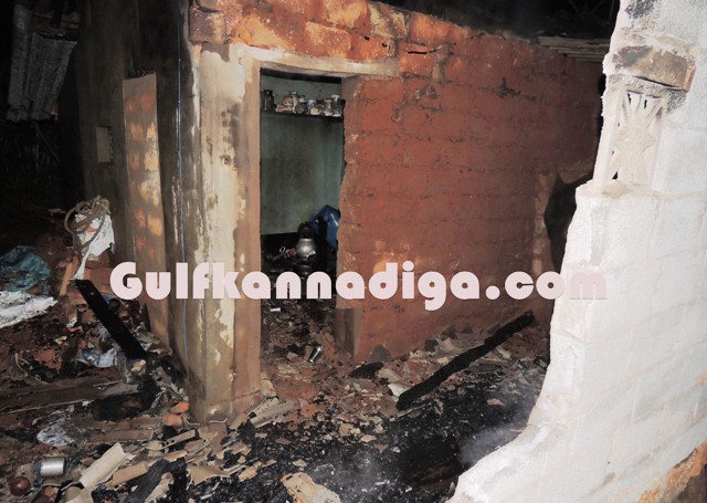 According to the sources, this was the house where couple Vasanthi and Amit was living along with their daughter Divya.Vasanthi was doing fish selling profession and Divya was working in one of the shops in Kundapur.In the absence of both mother and father at home, Divya who just came from work, went to the kitchen and lighted the hearth to cook and kept the kerosene oil lamp there and went outside. At that time fire woods, which was lying in the kitchen room accidentally caught fire. As there was a kerosene stove inside the kitchen, nobody bothered to enter inside the house as fire has already spread, fearing stove might burst.Kundapur Fire brigade personnel were summoned and they immediately arrived to the spot and could succeed in extinguish the fire completely.